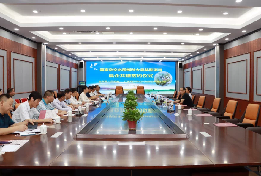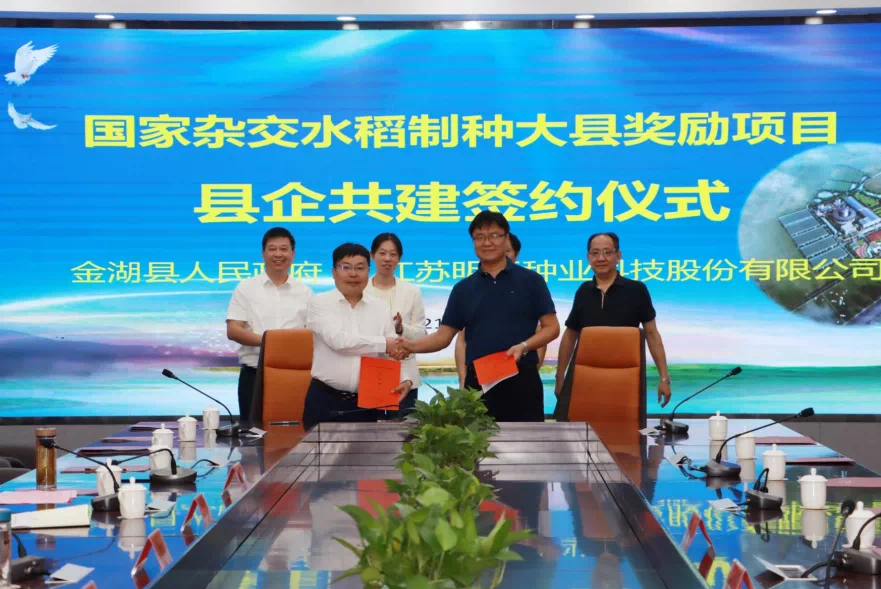 9月10日上午,江蘇明天種業(yè)科技股份有限公司在金湖縣舉行了全國雜交水稻制種大縣獎勵項目縣企共建簽約儀式。省農(nóng)業(yè)農(nóng)村廳二級巡視員俞衛(wèi)東、縣長萬旭東出席儀式并講話;省種子站二級調(diào)研員陳國斌參加儀式。公司總經(jīng)理嚴輝民與金湖縣副縣長朱亞代表縣企雙方進行簽約。