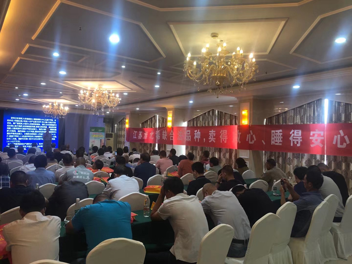 田間觀摩結(jié)束后,各縣市代理商及種植大戶紛紛在田間留下了珍貴的合影。合影后,觀摩人員從田間返回沭陽業(yè)事國際酒店,并就寧兩優(yōu)1513田間栽培管理開展培訓(xùn)會。
